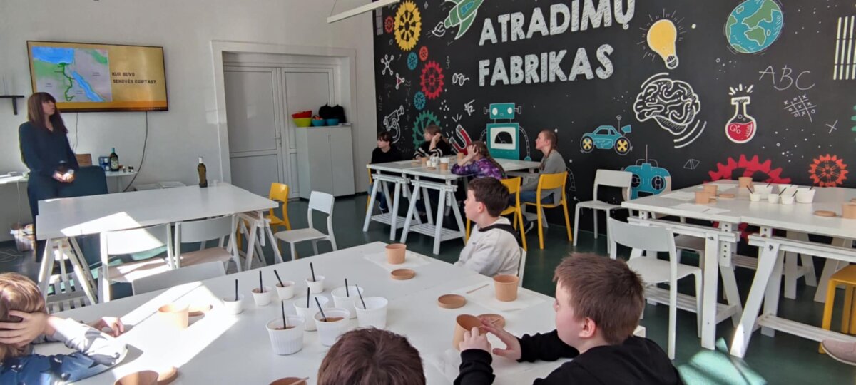 Technologijų pamoka netradicinėje aplinkoje edukacija į „Senovės Egiptą“. 5 klasės mokiniai technologijų pamokas leido netradicinėje erdvėje vyko į Šiaulių techninės kūrybos centrą, susipažino su Senovės Egipto civilizacija, religija ir mitologija, geografija, gilino žinias bei sužinojo apie egiptiečių grožio procedūras. Vieną grožio procedūrą „Kūno šveitiklį“ mokiniai pasigamino patys, rinkosi ingredientus, eterinius aliejus, maišė ir matavo aliejų. Žinoma labai nekantraudami jį išbandėme ir nutarėme, kad egiptiečiai apie grožio procedūras žinojo tikrai daug.