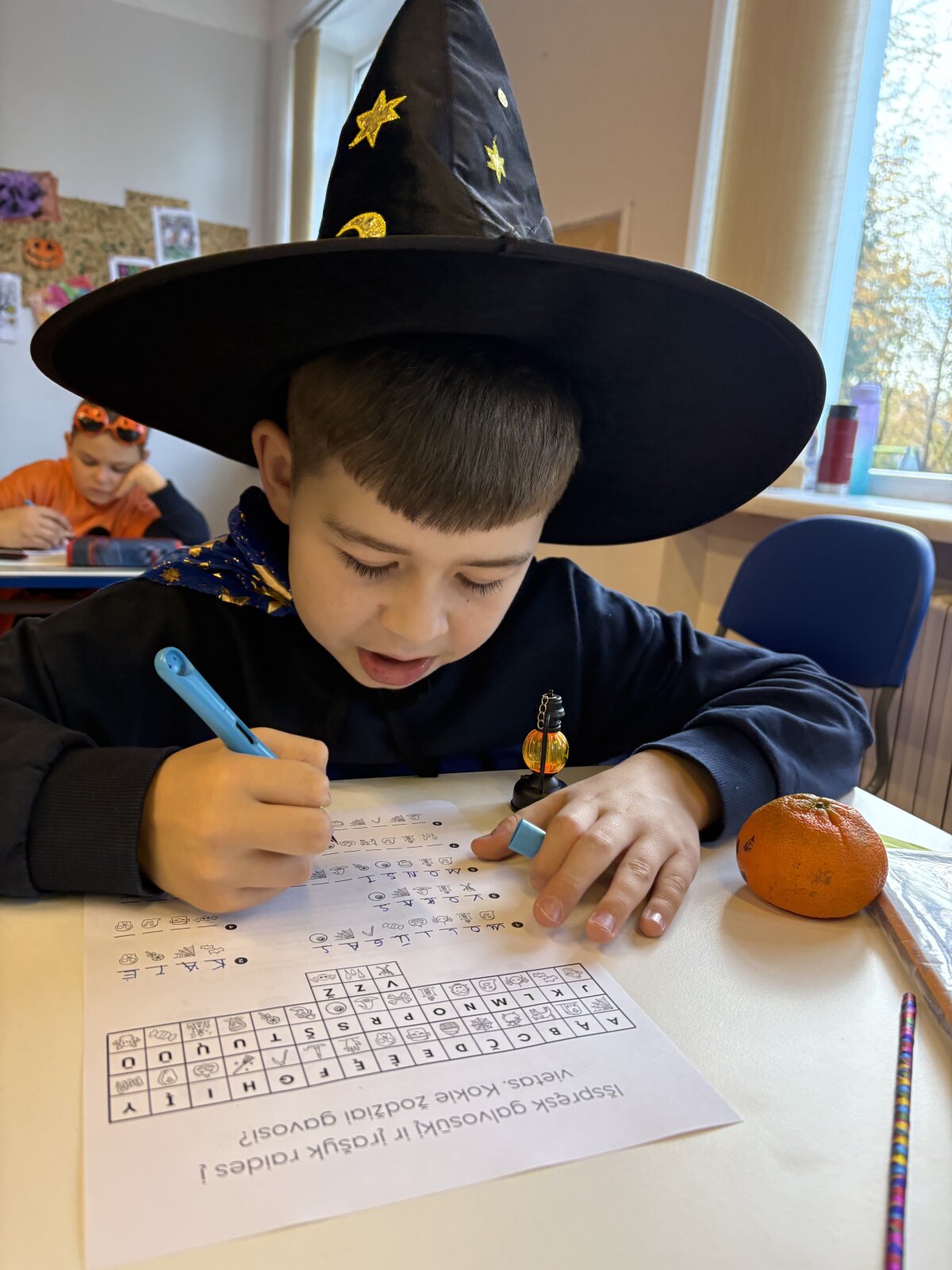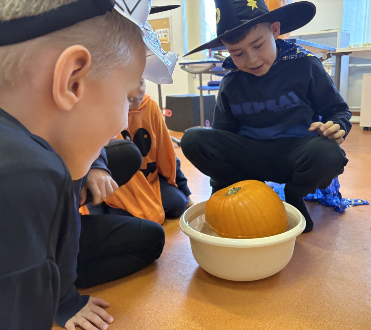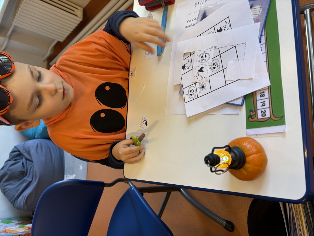 Vaikai klausėsi pasakos „Moliūgas – rudens karalius“, diskutavo, kodėl moliūgas vadinamas rudens simboliu. Pamokos kulminacija tapo kūrybinė veikla – moliūgų skaptavimas. Mokiniai džiaugėsi galėdami savo rankomis sukurti linksmą moliūgą. Klasėje tvyrojo smagus šurmulys, kūrybiška nuotaika ir tikras rudens kvapas!