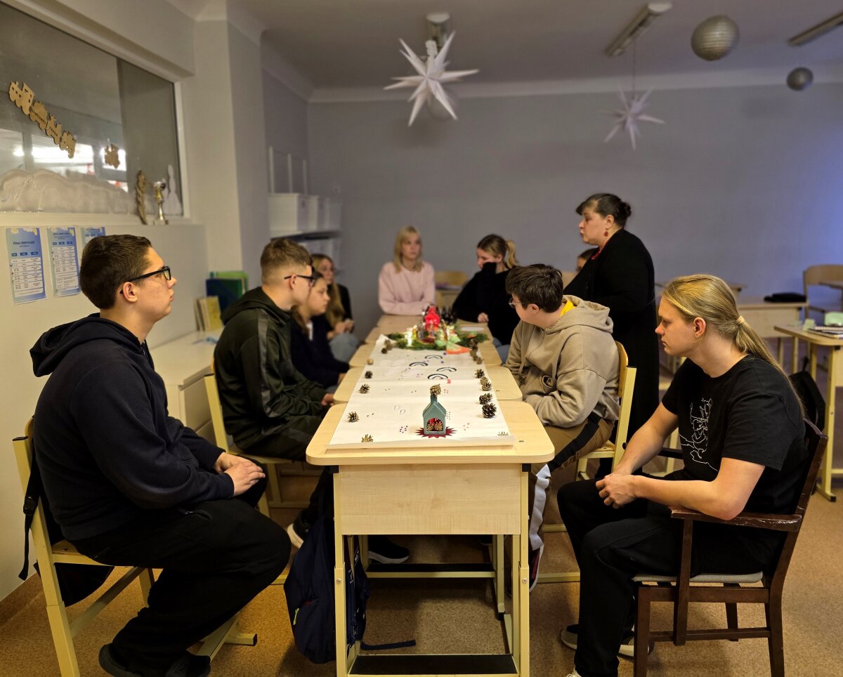 Artėjant didžiosioms metų šventėms vyko jauki ir prasminga klasės valandėlė su tikybos mokytoja Gitana.Valandėlė skirta Advento tradicijoms bei Kalėdų laukimo simboliams. Užsiėmimo metu mokiniai susipažino su Advento vainiko atsiradimo istorija, jo simboline reikšme bei svarbiausiais krikščioniškojo Kalėdų laukimo akcentais, aptarė Betliejaus žvaigždės, kaip šviesos ir vilties kelrodės, reikšmę.