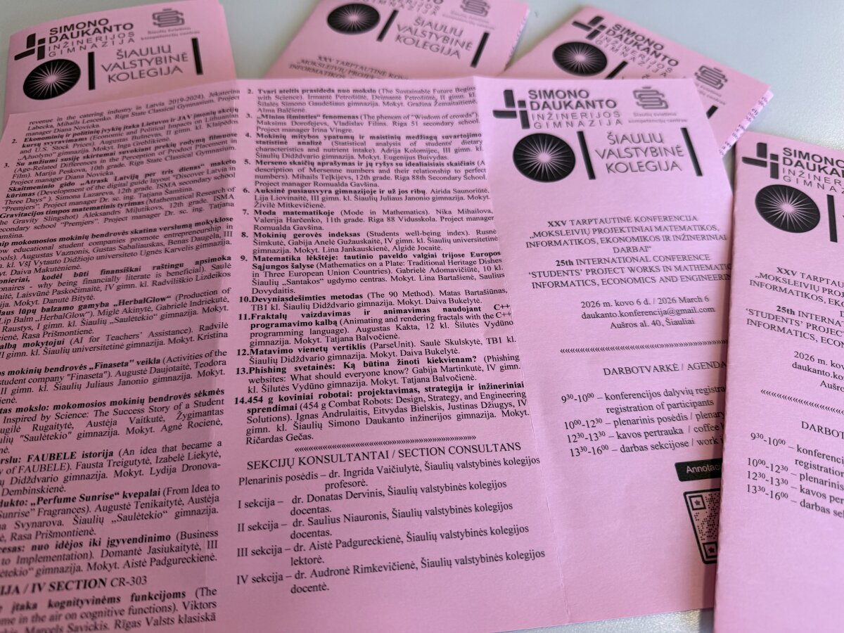 Kovo 6 dieną įvyko jubiliejinė, XXV tarptautinė moksleivių projektinių darbų konferencija, kurią organizavo Šiaulių Simono Daukanto inžinerijos gimnazija ir Šiaulių valstybinė kolegija. Konferencijoje savo įžvalgomis dalijosi jaunieji tyrėjai iš Lietuvos ir užsienio šalių.