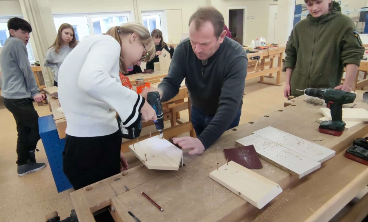 Dalyvavimas aplinkosauginiame projekte „Inkilų dirbtuvės: mokome ir kuriame“ ir „Atnaujink, sukurk, prikelk: senų kėdžių restauravimo menas“. Mokiniai supažino su inkilų gaminimo ypatumais: kodėl jie būna tam tikro dydžio, skiriasi landos. Taip pat sužinojo kėdės restauravimo etapus, praktiškai pamėgino išardyti kėdę, pervilkti naują audinį, dažyti, šveisti. Mokiniai susipažino su staliaus profesija, taip pat su medienos apdailos įrankiais, juos išbandė.