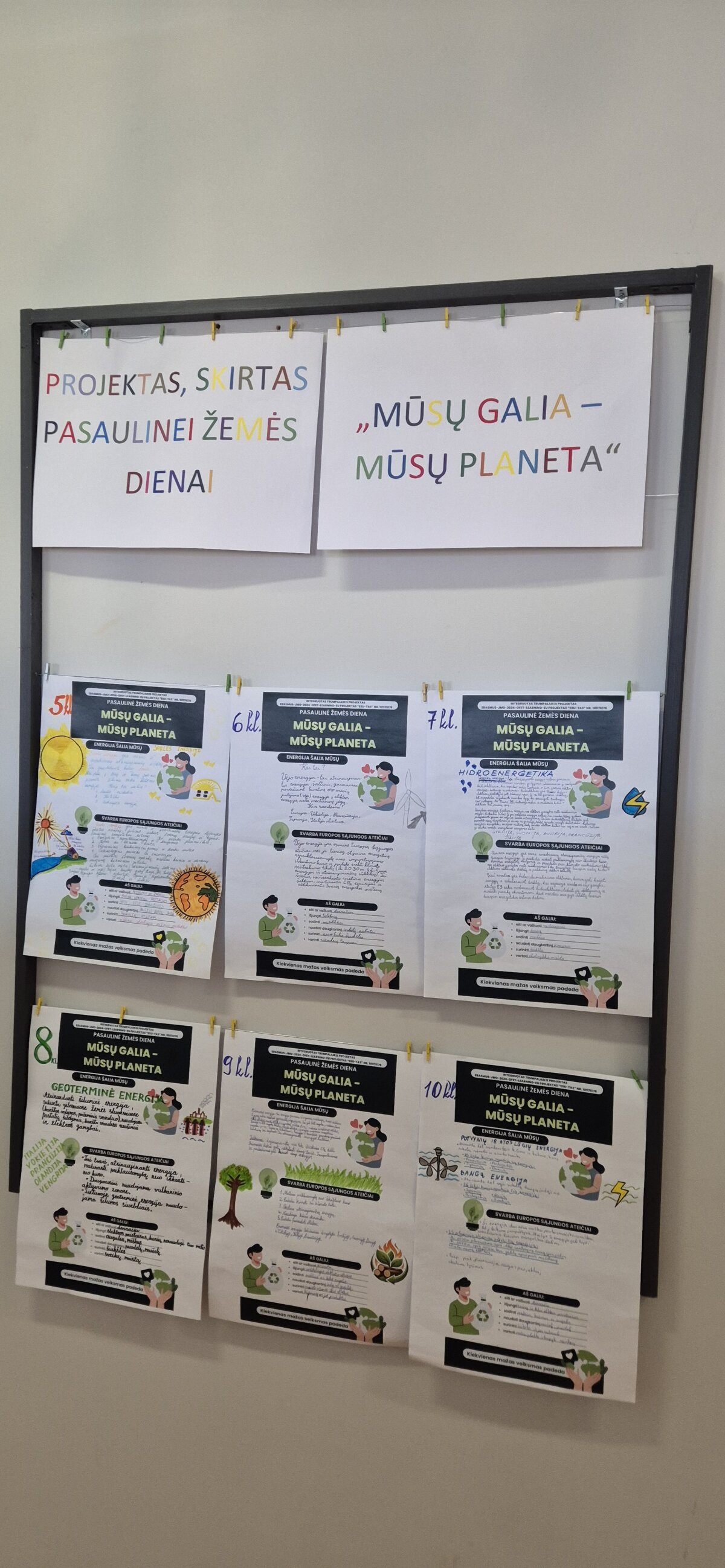 Kovo 16–20 dienomis mūsų mokykloje vyko projektinės veiklos, skirtos Pasaulinei Žemės dienai paminėti. Šių metų tema – „Mūsų galia – mūsų planeta“ skatino mokinius domėtis atsinaujinančiais energijos šaltiniais ir tvariu gyvenimo būdu.