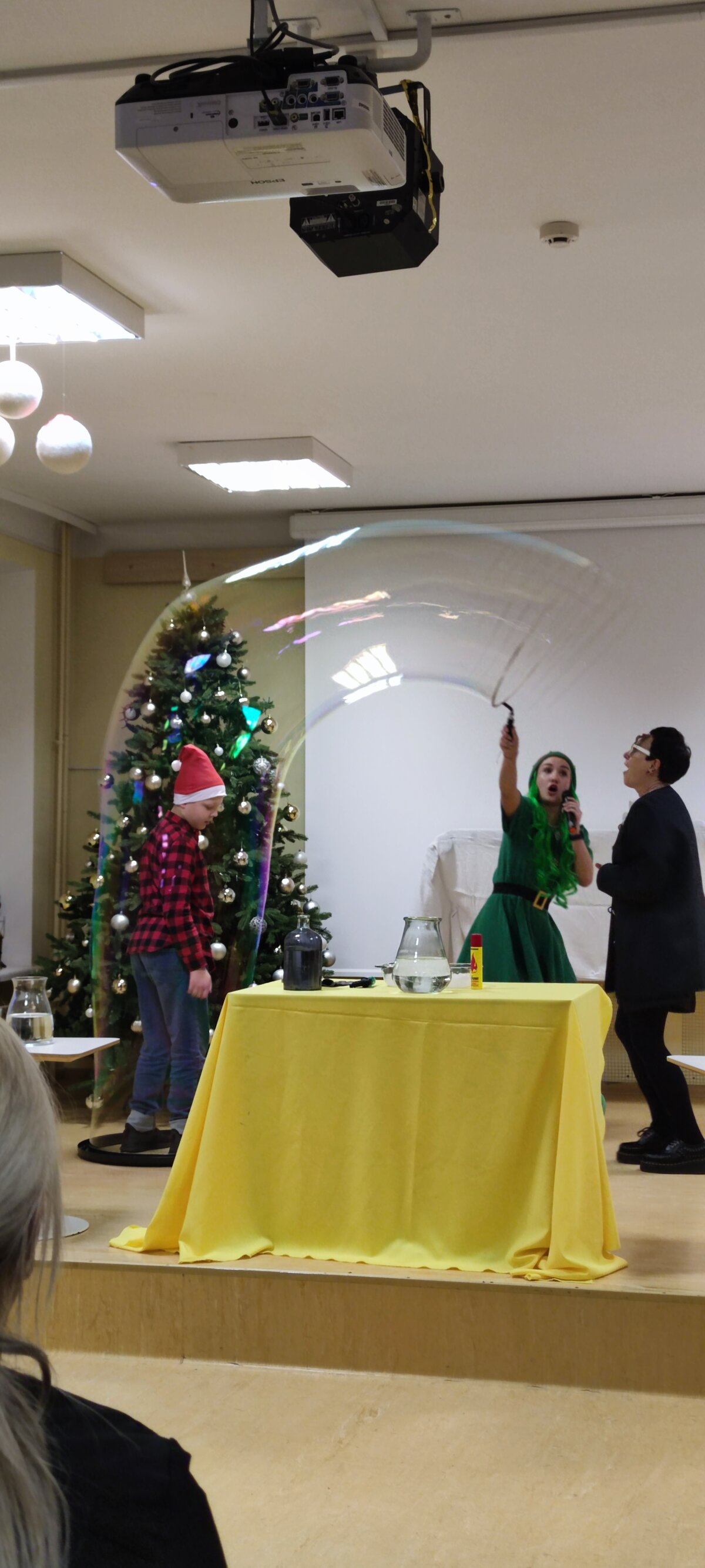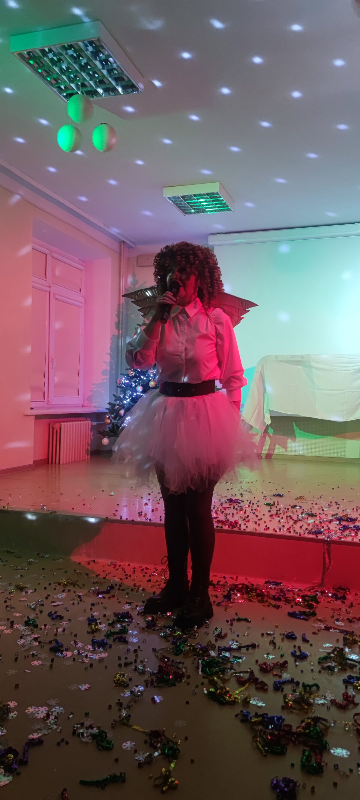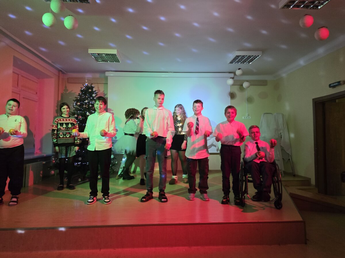 Paskutinį prieššventinį trečiadienį mokykloje sklandė pakili nuotaika ir bruzdesys klasėse, nes laukė jaukus pasisėdėjimas draugų būryje su šiltais apsikabinimais, palinkėjimais ir dovanų pasikeitimu. Iš ryto pradinukai žiūrėjo Kelmės mažojo teatro nuotaikingą spektaklį „Baisuoklis besmegenis“. Pavakary prie šventinės eglutės laukė susitikimas su Elfe ir jos magiškais burtais, jautrus dešimtokų pasirodymas, smagios penktokų, šeštokų, aštuntokų dainos, septintokų Šventinio bankucheno repavimas, devintokų muzikavimas varpeliais. O kokia šventė be Kalėdų Senelio ir jo dovanų? Kalėdų Senelis šį kartą atsiuntė savo Angelą sargą, kurį įpareigojo pagirti geriausiuosius, išdalinti visiems mokiniams dovanėles. Angelas su džiaugsmu paskelbė mokinius, mokytojų išrinktus „2025 metų Gerumo angelais“ ir įteikė jiems skirtas padėkas.