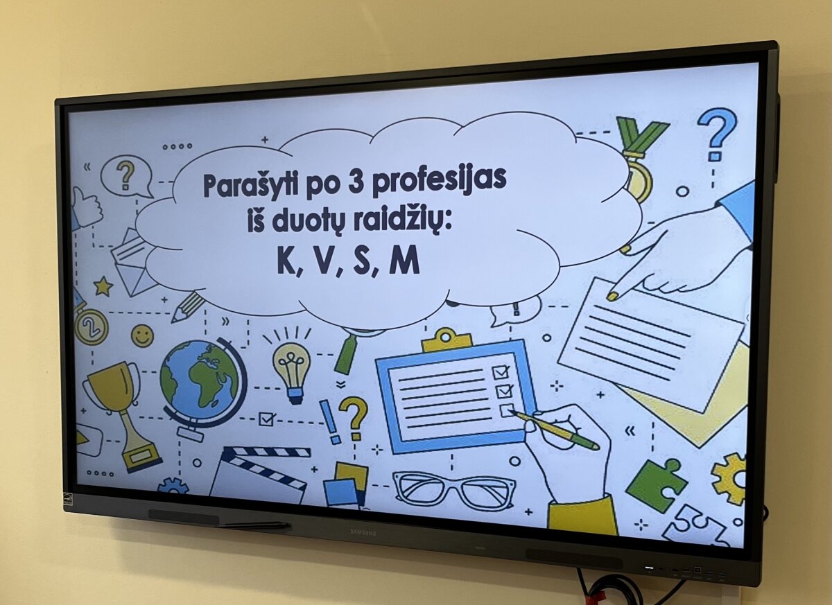 Mūsų centro penktokai, kartu su „Ringuvos“ mokyklos ir „Spindulio“ ugdymo centro mokiniais, pasitikrino žinias apie profesijų pasaulį. Komandos lenktyniavo atlikdamos įvairias užduotis: atsakant į klausimus, rungiantis, kam pavyks kryžiažodyje surasti kuo daugiau profesijų pavadinimų, išvardinant profesijas pagal pateiktas raides. Puikiai sekėsi kūrybinė užduotis – be žodžių pavaizduoti profesiją. Suskaičiavus viktorinos rezultatus paaiškėjo, kad visi parodė puikias žinias ir išradingumą. Komandos apdovanotos diplomais ir saldžiais prizais.