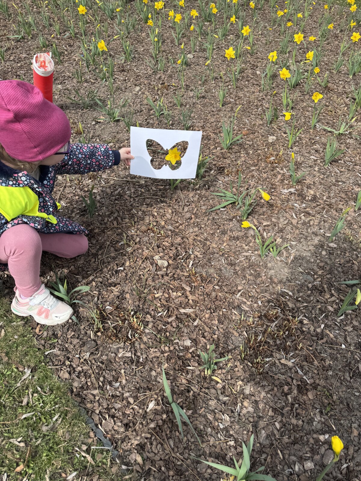 Pamokos pradžioje mokiniai susipažino su pavasarį žydinčiais augalais, jų spalvų įvairove bei aptarė drugelio sandarą ir jo sparnų simetriją. Vėliau, pasitelkę iš anksto paruoštus drugelio formos trafaretus, vaikai išėjo į mokyklos aplinką ieškoti įvairių žiedelių, lapelių ir kitų gamtinių medžiagų. Surinktas gamtos „lobis“ virto kūrybine priemone – mokiniai dėliojo augalus trafaretuose, kurdami spalvingus, unikalius drugelių sparnus primenančius paveikslus. Kiekvienas darbas atspindėjo vaiko individualumą, kūrybiškumą ir gebėjimą pastebėti gamtos grožį.
