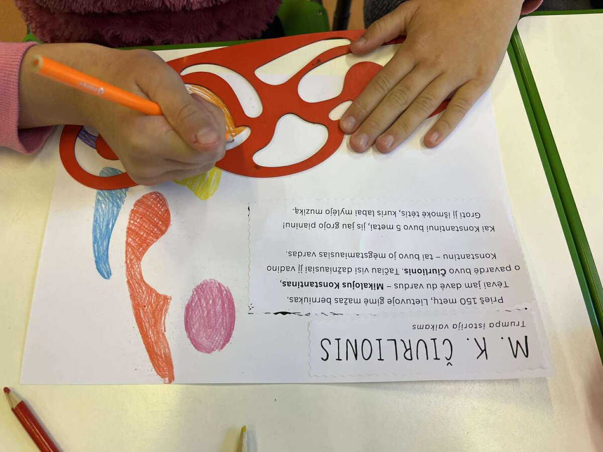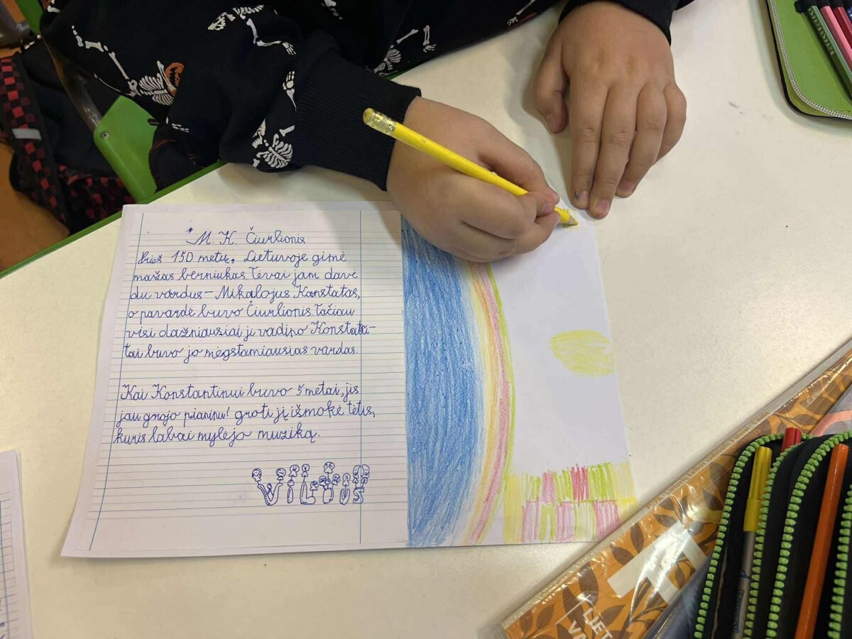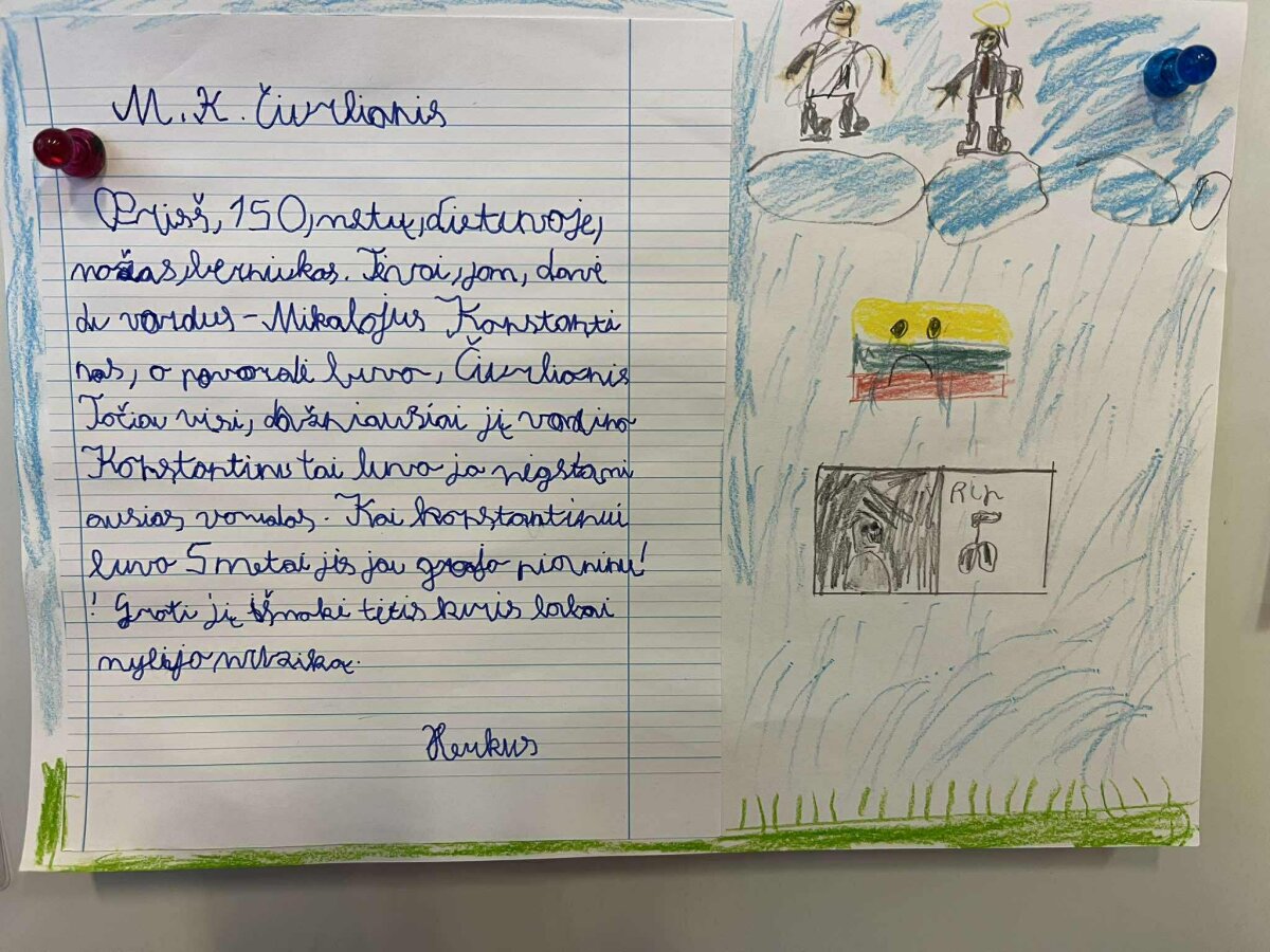 - „Čiurlionis istorijoje: Lietuvos tapatybė ES kultūros erdvėje“. 5–10 kl. mokiniai susipažino su genialaus menininko gyvenimu, darbais, ieškojo Čiurlionio kūrybos ir europinės tapatybės sąsajų.