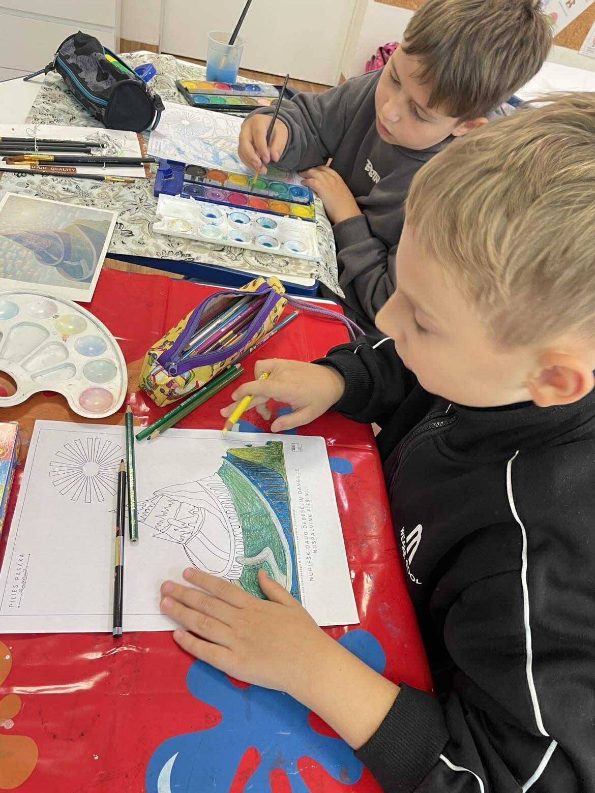 - „Čiurlionio atspalviai“. „Kur vaizdas kalba, o muzika piešia“. 1–4 kl. mokiniai kūrė Čiurlionio muzikos ir dailės įkvėptas instaliacijas, papuošė I aukšto erdves. Mažųjų darbai įkvėpė diskusijas apie spalvų ir garsų sąsajas.