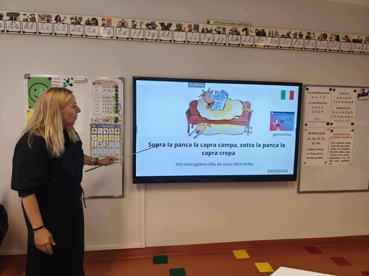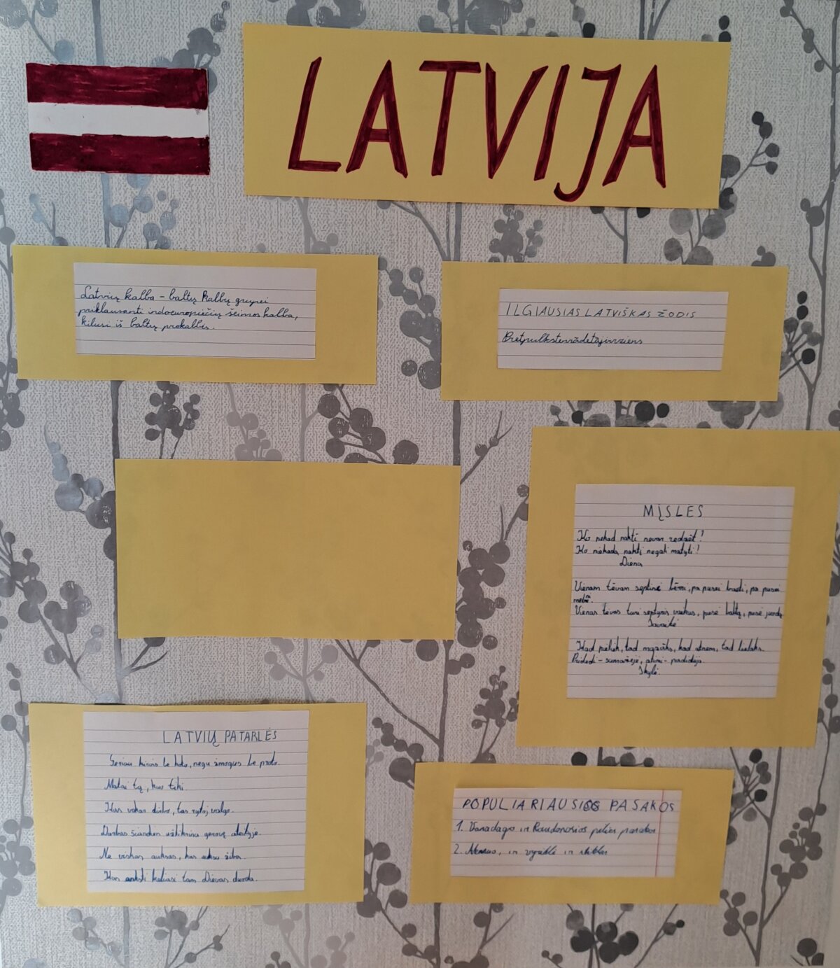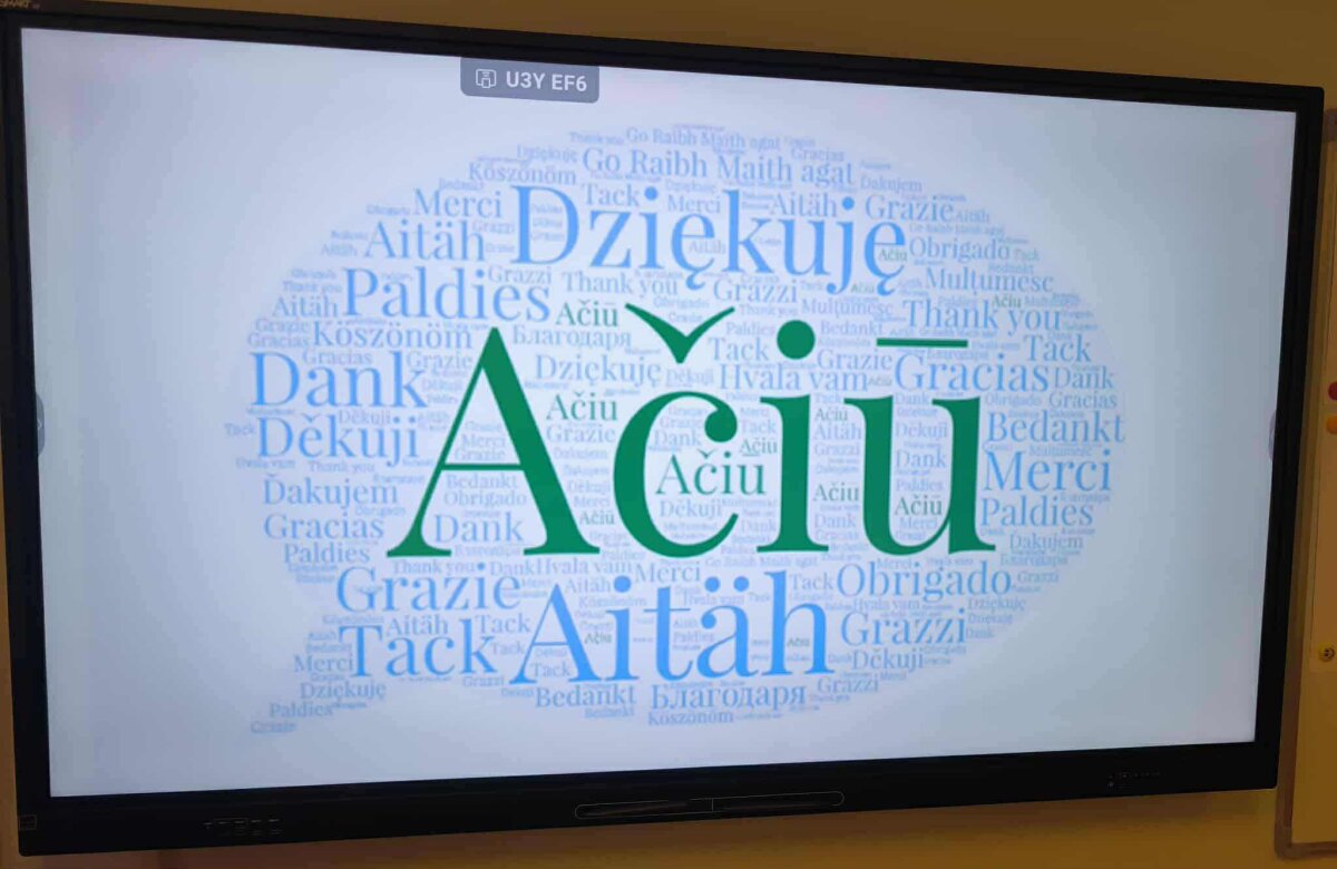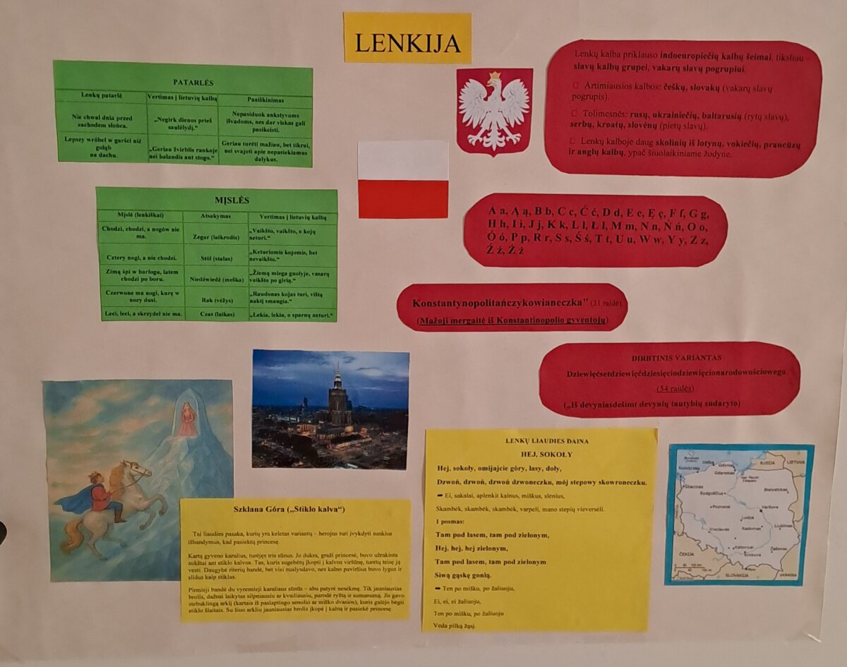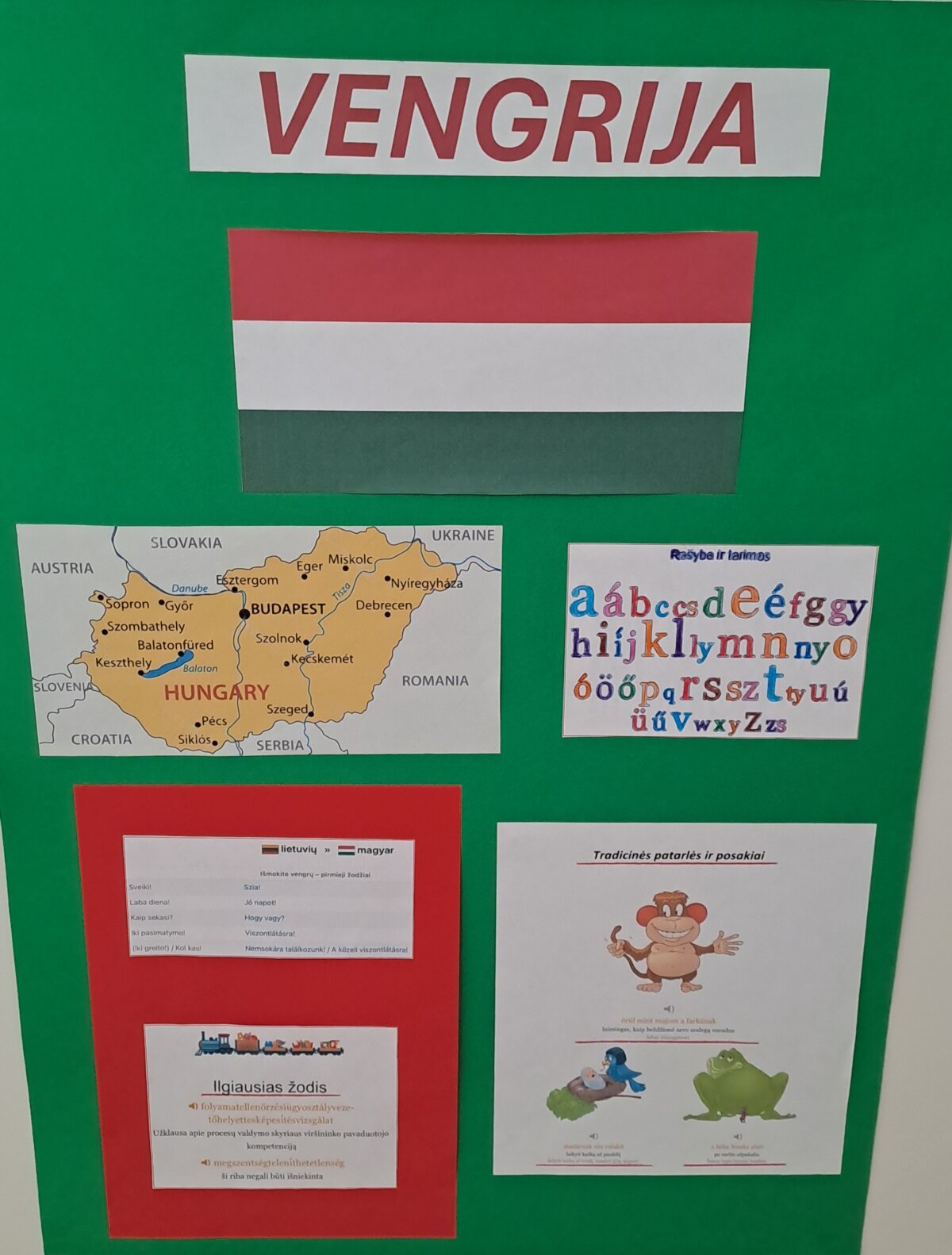 - „Europos kalbų laboratorija“. Kiekviena klasė gavo po vieną ES šalį – nuo Austrijos iki Lenkijos – ir ant klasių durų viešino kalbos ypatybes: abėcėlę, ilgiausius žodžius, patarles, pasakas. Mokiniai papildė ekspozicijas ir šalies faktais, vėliavomis bei žemėlapiais.
