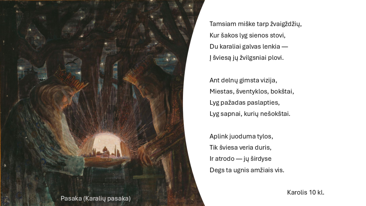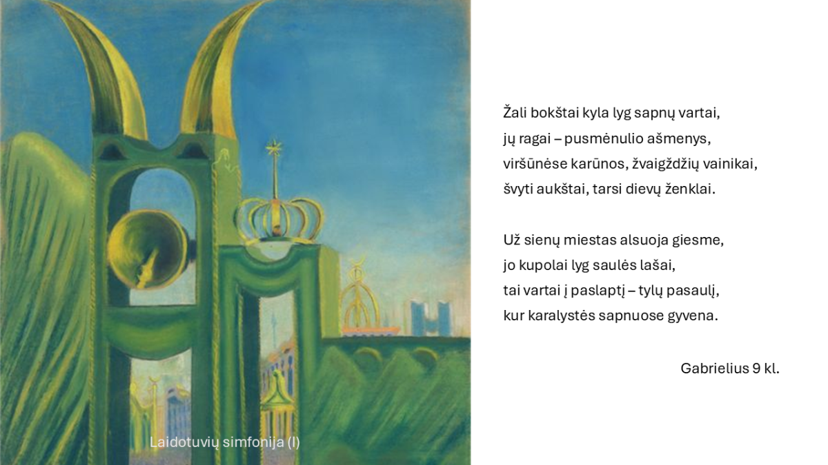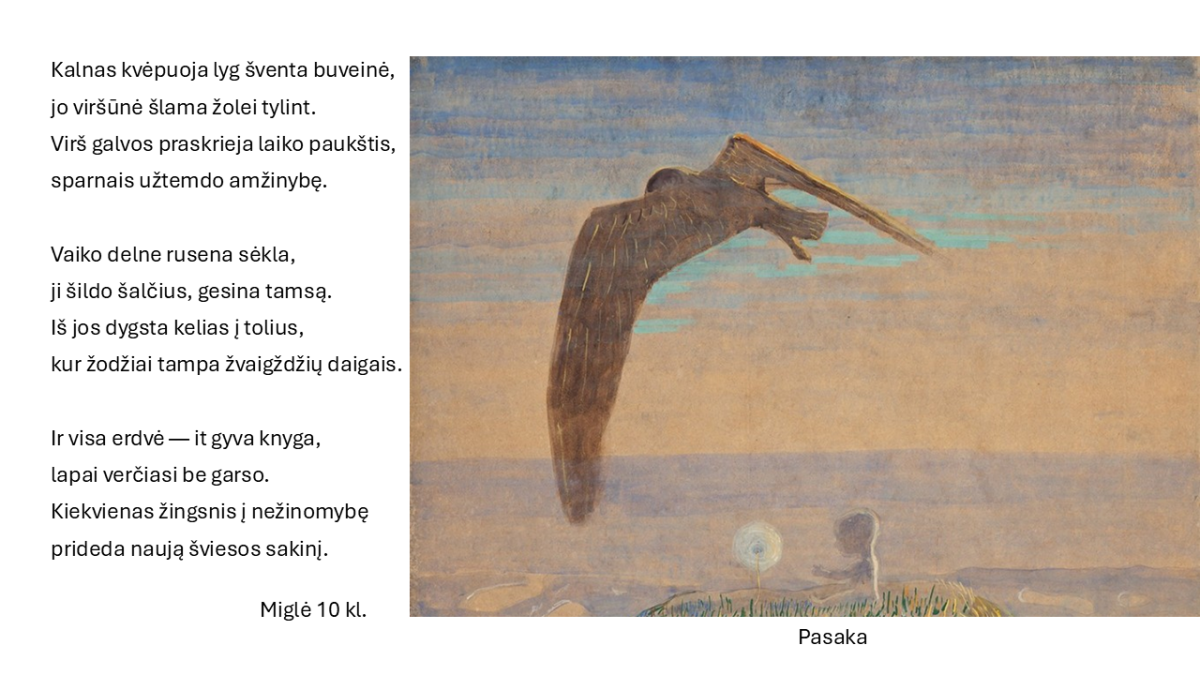- „Skaitmeninė simfonija: Čiurlionis, IT ir poezija“. 7–10 kl. mokiniai jungė kūrybinį rašymą ir skaitmenines technologijas. Įkvėpti M. K. Čiurlionio paveikslų kūrė eilėraščius pasitelkdami skaitmenines technologijas bei mokydamiesi teisingai generuoti užklausas.
