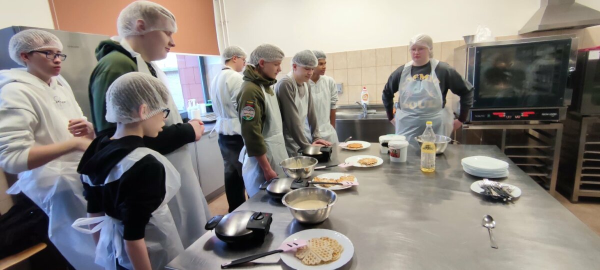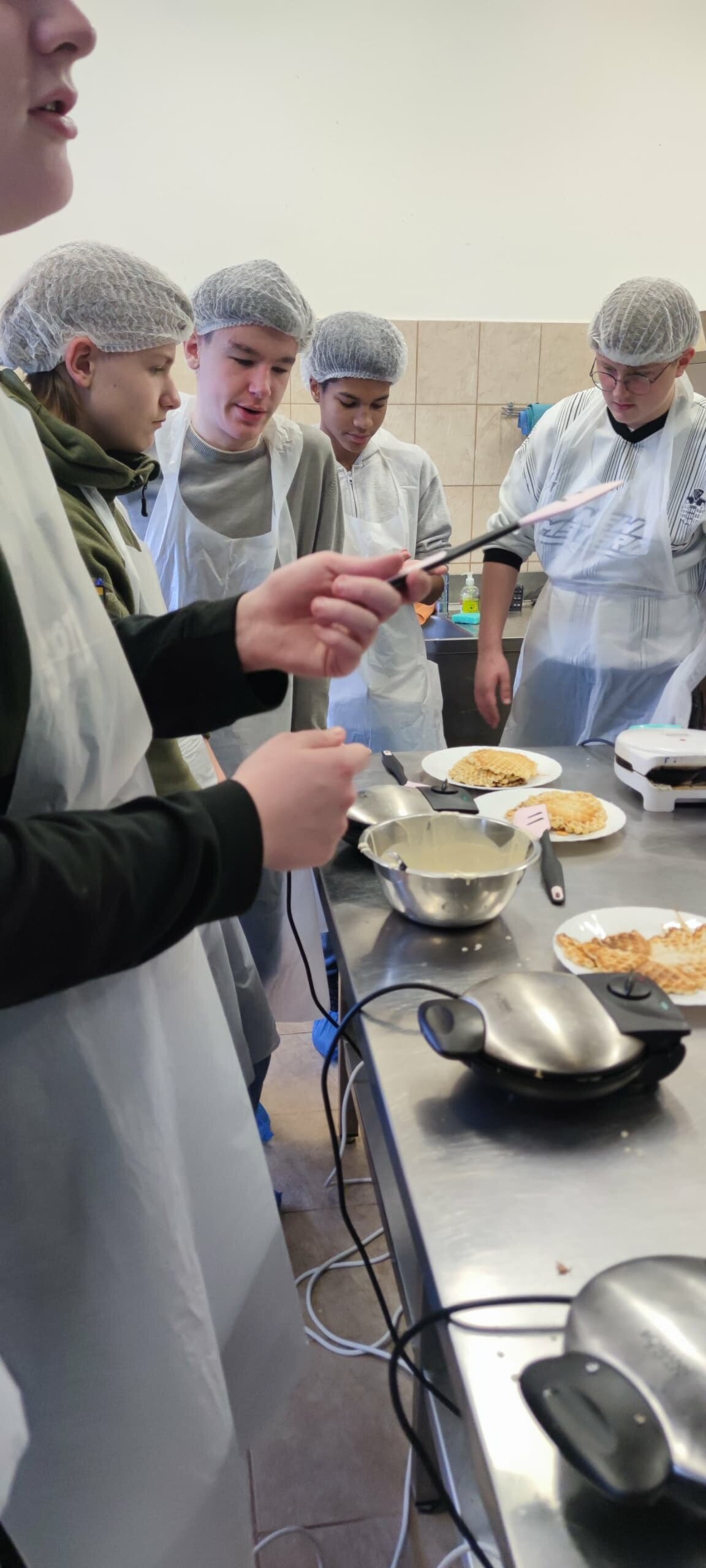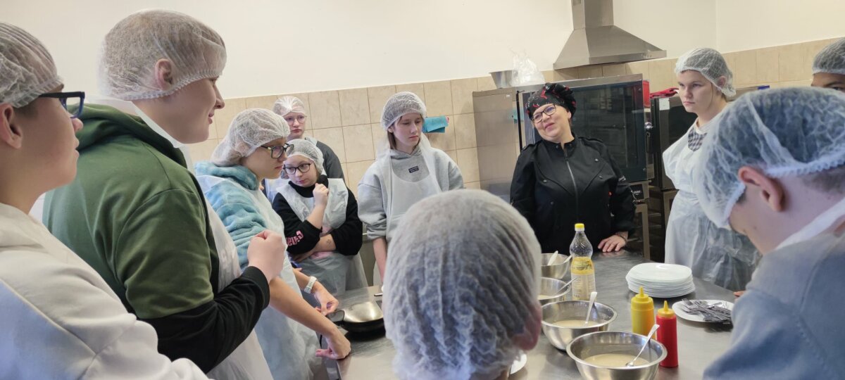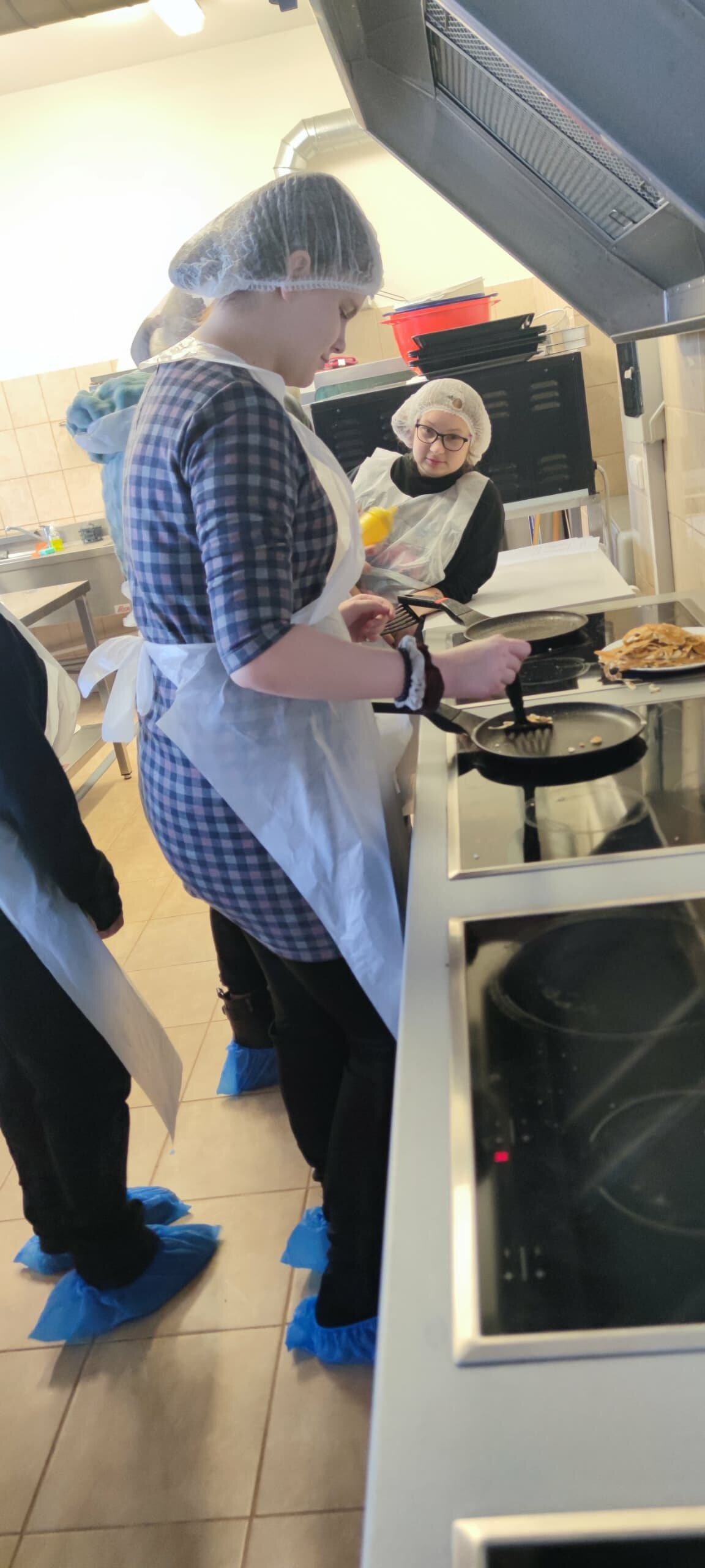 Technologijų pamokos kitose erdvėse. 8 klasės išvyka į Šiaulių TMC verslo ir paslaugų skyrių. Blynai ir blyneliai – tai vieni universaliausių patiekalų pasaulio virtuvėje. Gamindami blynus, mokiniai susipažino su įvairiais maisto produktais, jų savybėmis ir kilme, taip pat lavino praktinius, matematinius ir kūrybinius gebėjimus, susipažino su konditerio profesija.